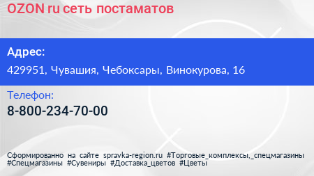OZON.ru, сеть постаматов по адресу 429951, Чувашия, Чебоксары, Винокурова, 16 в дальнейшем Организация, размещена в следующих категориях:
