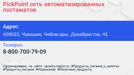 PickPoint, сеть автоматизированных постаматов по адресу 428022, Чувашия, Чебоксары, Декабристов, 41 в дальнейшем Организация, размещена в следующих категориях: