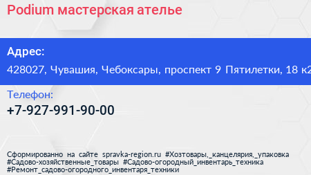 Podium, мастерская-ателье по адресу 428027, Чувашия, Чебоксары, проспект 9 Пятилетки, 18 к2 в дальнейшем Организация, размещена в следующих категориях: