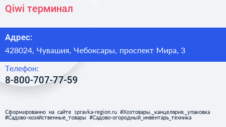 Qiwi, терминал по адресу 428024, Чувашия, Чебоксары, проспект Мира, 3 в дальнейшем Организация, размещена в следующих категориях: