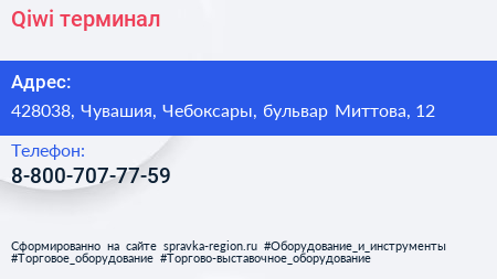 Qiwi, терминал по адресу 428038, Чувашия, Чебоксары, бульвар Миттова, 12 в дальнейшем Организация, размещена в следующих категориях: