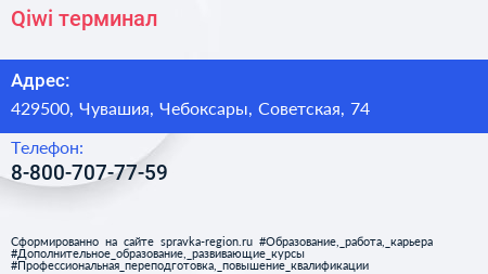 Qiwi, терминал по адресу 429500, Чувашия, Чебоксары, Советская, 74 в дальнейшем Организация, размещена в следующих категориях: