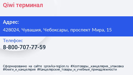 Qiwi, терминал по адресу 428024, Чувашия, Чебоксары, проспект Мира, 15 в дальнейшем Организация, размещена в следующих категориях: