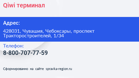 Qiwi, терминал по адресу 428031, Чувашия, Чебоксары, проспект Тракторостроителей, 1/34 в дальнейшем Организация, размещена в следующих категориях: