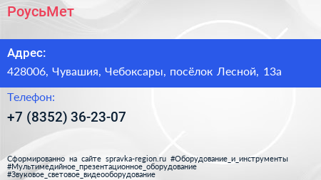 РоусьМет по адресу 428006, Чувашия, Чебоксары, посёлок Лесной, 13а в дальнейшем Организация, размещена в следующих категориях: