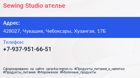 Sewing Studio, ателье по адресу 428027, Чувашия, Чебоксары, Хузангая, 17Б в дальнейшем Организация, размещена в следующих категориях: