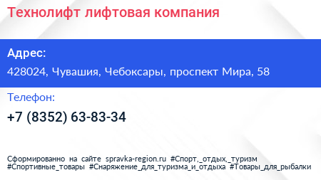 Технолифт, лифтовая компания по адресу 428024, Чувашия, Чебоксары, проспект Мира, 58 в дальнейшем Организация, размещена в следующих категориях: