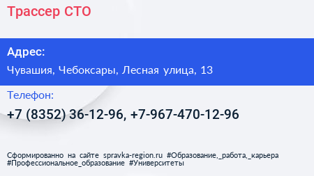 Трассер, СТО по адресу Чувашия, Чебоксары, Лесная улица, 13 в дальнейшем Организация, размещена в следующих категориях: