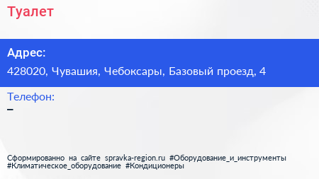 Туалет по адресу 428020, Чувашия, Чебоксары, Базовый проезд, 4 в дальнейшем Организация, размещена в следующих категориях:
