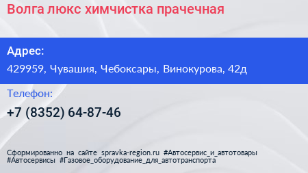 Волга-люкс, химчистка-прачечная по адресу 429959, Чувашия, Чебоксары, Винокурова, 42д в дальнейшем Организация, размещена в следующих категориях:
