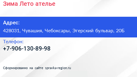 Зима-Лето, ателье по адресу 428031, Чувашия, Чебоксары, Эгерский бульвар, 20Б в дальнейшем Организация, размещена в следующих категориях: