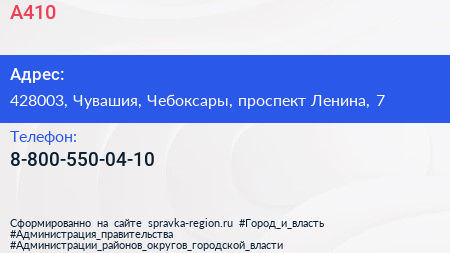 А410 по адресу 428003, Чувашия, Чебоксары, проспект Ленина, 7 в дальнейшем Организация, размещена в следующих категориях:
