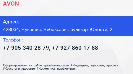 AVON по адресу 428034, Чувашия, Чебоксары, бульвар Юности, 2 в дальнейшем Организация, размещена в следующих категориях: