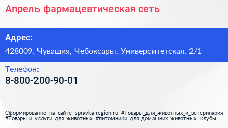 Апрель, фармацевтическая сеть по адресу 428009, Чувашия, Чебоксары, Университетская, 2/1 в дальнейшем Организация, размещена в следующих категориях: