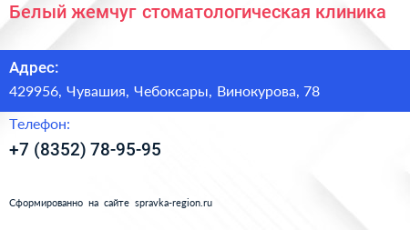 Белый жемчуг, стоматологическая клиника по адресу 429956, Чувашия, Чебоксары, Винокурова, 78 в дальнейшем Организация, размещена в следующих категориях: