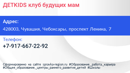ДЕТKIDS, клуб будущих мам по адресу 428003, Чувашия, Чебоксары, проспект Ленина, 7 в дальнейшем Организация, размещена в следующих категориях: