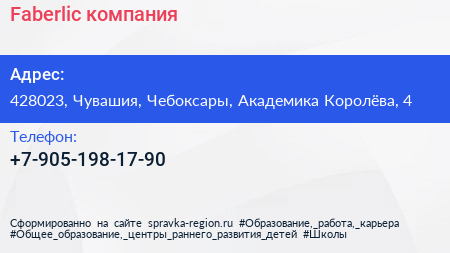 Faberlic, компания по адресу 428023, Чувашия, Чебоксары, Академика Королёва, 4 в дальнейшем Организация, размещена в следующих категориях: