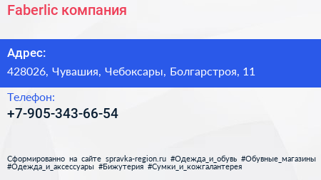 Faberlic, компания по адресу 428026, Чувашия, Чебоксары, Болгарстроя, 11 в дальнейшем Организация, размещена в следующих категориях: