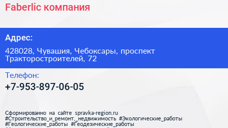 Faberlic, компания по адресу 428028, Чувашия, Чебоксары, проспект Тракторостроителей, 72 в дальнейшем Организация, размещена в следующих категориях: