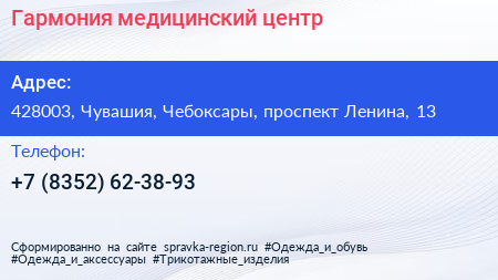 Гармония, медицинский центр по адресу 428003, Чувашия, Чебоксары, проспект Ленина, 13 в дальнейшем Организация, размещена в следующих категориях: