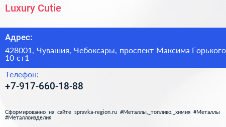 Luxury Cutie по адресу 428001, Чувашия, Чебоксары, проспект Максима Горького, 10 ст1 в дальнейшем Организация, размещена в следующих категориях:
