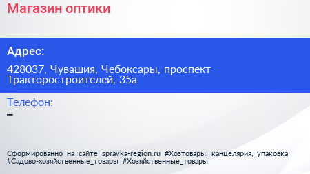 Магазин оптики по адресу 428037, Чувашия, Чебоксары, проспект Тракторостроителей, 35а в дальнейшем Организация, размещена в следующих категориях: