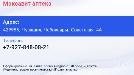 Максавит, аптека по адресу 429955, Чувашия, Чебоксары, Советская, 44 в дальнейшем Организация, размещена в следующих категориях: