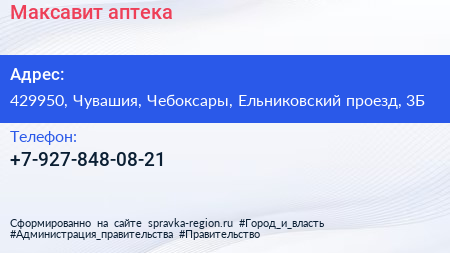 Максавит, аптека по адресу 429950, Чувашия, Чебоксары, Ельниковский проезд, 3Б в дальнейшем Организация, размещена в следующих категориях: