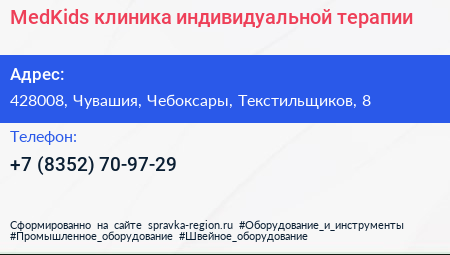 MedKids, клиника индивидуальной терапии по адресу 428008, Чувашия, Чебоксары, Текстильщиков, 8 в дальнейшем Организация, размещена в следующих категориях: