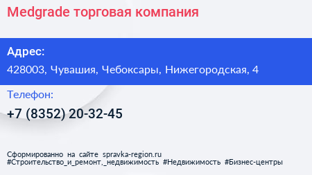 Medgrade, торговая компания по адресу 428003, Чувашия, Чебоксары, Нижегородская, 4 в дальнейшем Организация, размещена в следующих категориях: