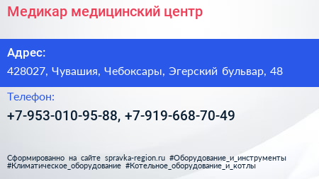 Медикар, медицинский центр по адресу 428027, Чувашия, Чебоксары, Эгерский бульвар, 48 в дальнейшем Организация, размещена в следующих категориях:
