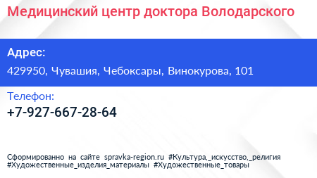 Медицинский центр доктора Володарского по адресу 429950, Чувашия, Чебоксары, Винокурова, 101 в дальнейшем Организация, размещена в следующих категориях: