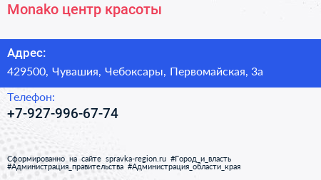 Monako, центр красоты по адресу 429500, Чувашия, Чебоксары, Первомайская, 3а в дальнейшем Организация, размещена в следующих категориях:
