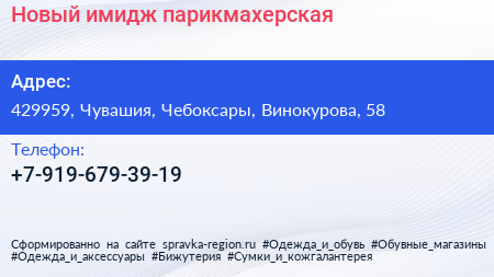 Новый имидж, парикмахерская по адресу 429959, Чувашия, Чебоксары, Винокурова, 58 в дальнейшем Организация, размещена в следующих категориях: