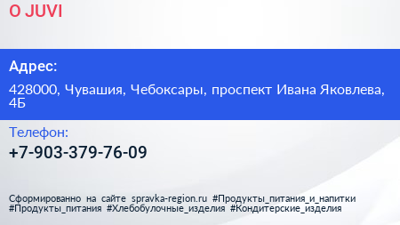 O`JUVI по адресу 428000, Чувашия, Чебоксары, проспект Ивана Яковлева, 4Б в дальнейшем Организация, размещена в следующих категориях: