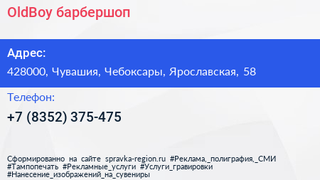 OldBoy, барбершоп по адресу 428000, Чувашия, Чебоксары, Ярославская, 58 в дальнейшем Организация, размещена в следующих категориях: