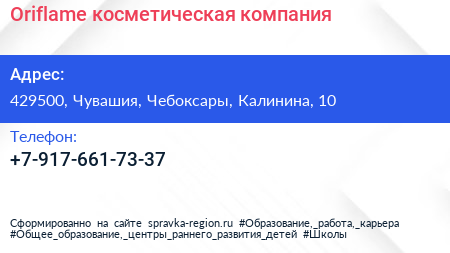 Oriflame, косметическая компания по адресу 429500, Чувашия, Чебоксары, Калинина, 10 в дальнейшем Организация, размещена в следующих категориях: