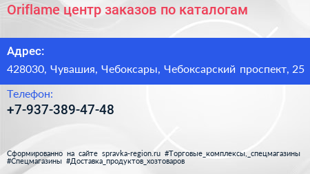 Oriflame, центр заказов по каталогам по адресу 428030, Чувашия, Чебоксары, Чебоксарский проспект, 25 в дальнейшем Организация, размещена в следующих категориях: