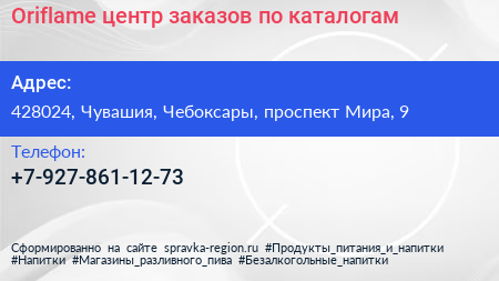 Oriflame, центр заказов по каталогам по адресу 428024, Чувашия, Чебоксары, проспект Мира, 9 в дальнейшем Организация, размещена в следующих категориях: