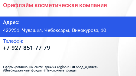 Орифлэйм, косметическая компания по адресу 429951, Чувашия, Чебоксары, Винокурова, 10 в дальнейшем Организация, размещена в следующих категориях: