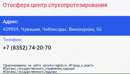 Отосфера, центр слухопротезирования по адресу 429959, Чувашия, Чебоксары, Винокурова, 56 в дальнейшем Организация, размещена в следующих категориях: