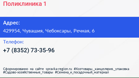 Поликлиника №1 по адресу 429954, Чувашия, Чебоксары, Речная, 6 в дальнейшем Организация, размещена в следующих категориях: