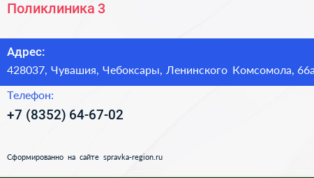 Поликлиника №3 по адресу 428037, Чувашия, Чебоксары, Ленинского Комсомола, 66а в дальнейшем Организация, размещена в следующих категориях: