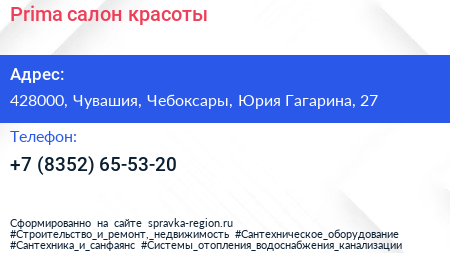 Prima, салон красоты по адресу 428000, Чувашия, Чебоксары, Юрия Гагарина, 27 в дальнейшем Организация, размещена в следующих категориях: