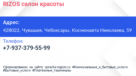 RIZOS, салон красоты по адресу 428022, Чувашия, Чебоксары, Космонавта Николаева, 59 в дальнейшем Организация, размещена в следующих категориях: