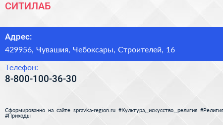 СИТИЛАБ по адресу 429956, Чувашия, Чебоксары, Строителей, 16 в дальнейшем Организация, размещена в следующих категориях: