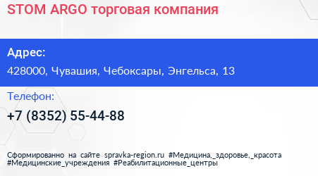 STOM ARGO, торговая компания по адресу 428000, Чувашия, Чебоксары, Энгельса, 13 в дальнейшем Организация, размещена в следующих категориях: