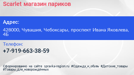 Scarlet, магазин париков по адресу 428000, Чувашия, Чебоксары, проспект Ивана Яковлева, 4Б в дальнейшем Организация, размещена в следующих категориях: