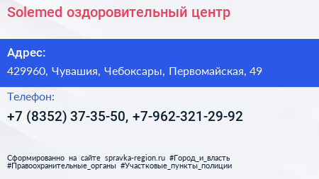 Solemed, оздоровительный центр по адресу 429960, Чувашия, Чебоксары, Первомайская, 49 в дальнейшем Организация, размещена в следующих категориях: