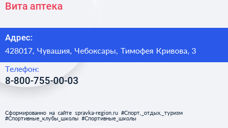 Вита, аптека по адресу 428017, Чувашия, Чебоксары, Тимофея Кривова, 3 в дальнейшем Организация, размещена в следующих категориях: